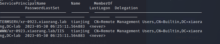 拿着 XR-0923$ 的ntlm哈希看SPN能找到一个tianjing用户