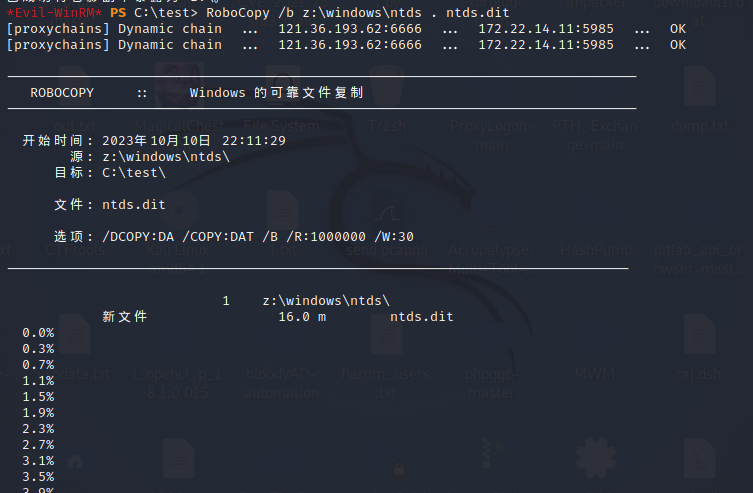 RoboCopy /b z:\windows\ntds . ntds.dit