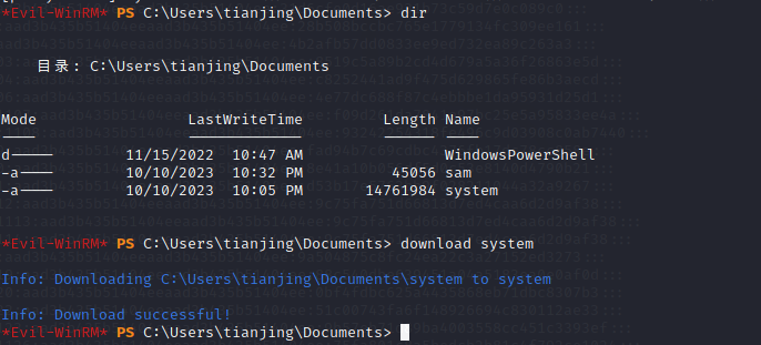 最后把sam下下来,不知道是不是我代理的问题,贼慢,找不到图了,反正命令就是download ntds.dit
