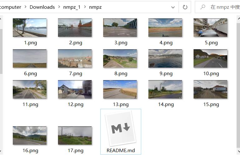 题目附件里是十七张谷歌街景以及一个README,打开README是题目的描述: