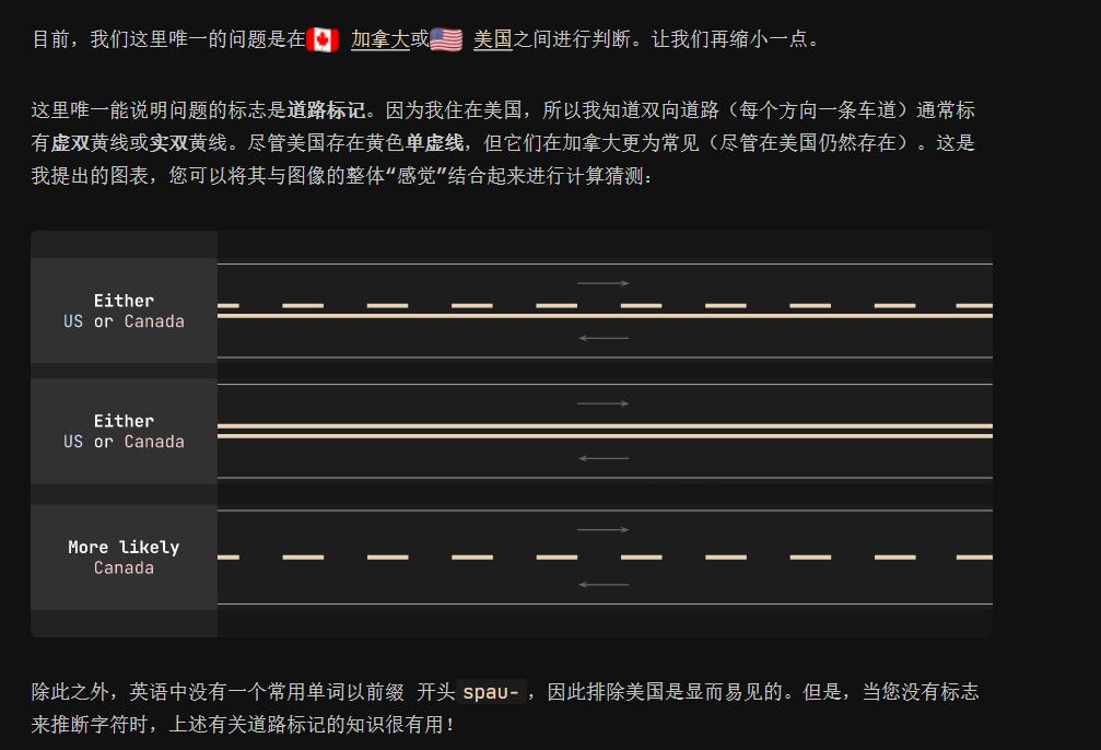 赛后出题人提到:Calgary, Canada. US has two yellow lines in the middle, Canada one. Most of the time,就是说加拿大卡尔加里。美国中间有两条黄线,加拿大有一条,大多数时候。但事实上这里还是容易和美国北部弄混。