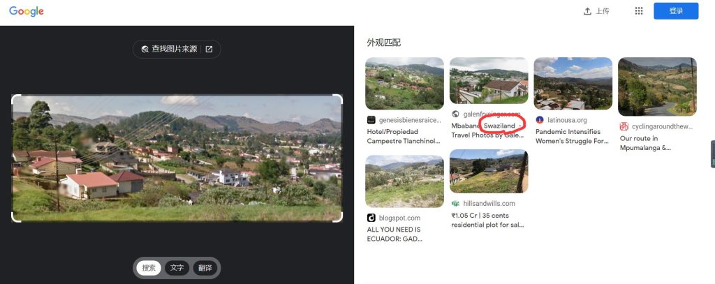 然后又看了其他师傅的wp,发现其实只要把房屋的部分截取下来进行识图就能发现它来自于Swaziland,而坑爹的是这个国家这几年改名成了斯威士兰,也就是Eswatini,所以取e。