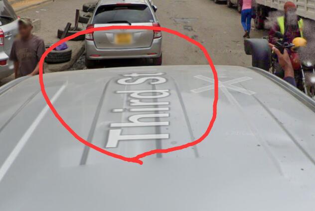 其次是谷歌车顶的地点名:Third St,第三街区