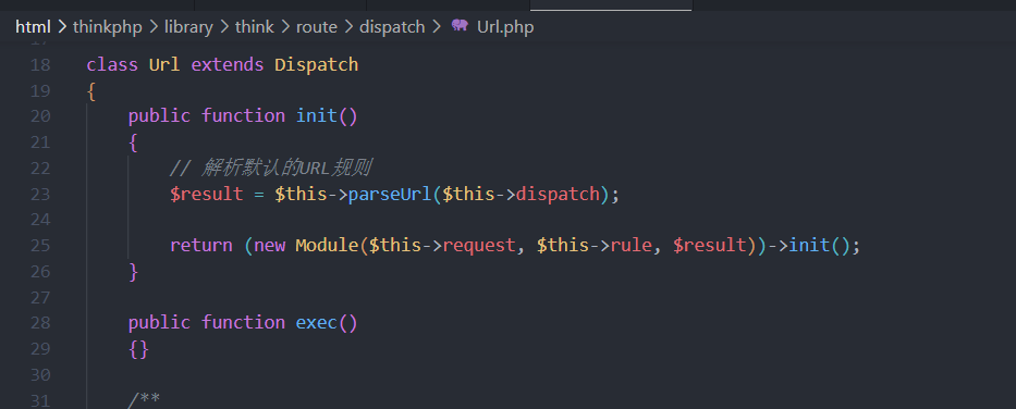 在这个方法的最后会进行一次路由解析,也就是实例化UrlDispatch对象,让UrlDispatch继承了Dispathch