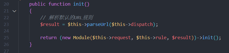 然后会执行return (new Module($this->request, $this->rule, $result))->init();会在这里new一个Model对象然后调用Init方法,这里就是整个payload最关键的部分