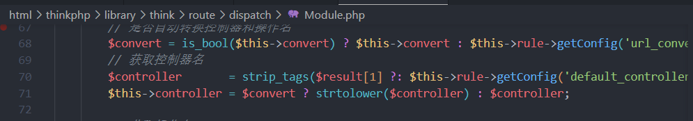 $controller = strip_tags($result[1] ?: $this->rule->getConfig('default_controller'));
