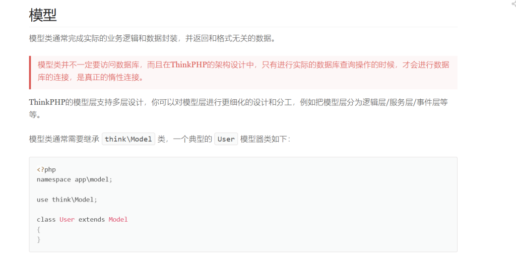 也就是说模型类的作用大多数情况是操作数据库,按照系统的规范来命名模型类的话,大多数情况下是可以自动对应数据表的,如: