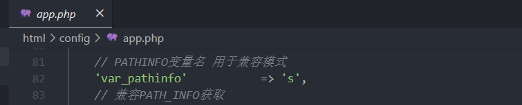 这其中$this->config[‘var_pathinfo’]的值就是config目录下的app.php文件中var_pathinfo的值,也就是”s”