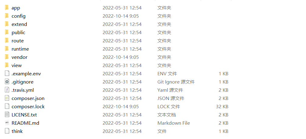 看到我们下载的ThinkPHP源码,其目录结构为:
