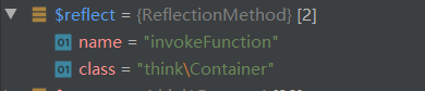 此时$reflect的值从think\app变成了think\Container,因为app继承了Contatiner类,而我们的invokefunciton方法也是属于Containterd的