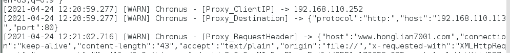 查看24号的日志,然后找到有www.honglian7001.com那里,可以看见设备ip即Proxy_ClientIP,地址为192.168.110.252(这怎么是个内网地址);转发的服务器ip即Proxy_Destination,地址为192.168.110.113