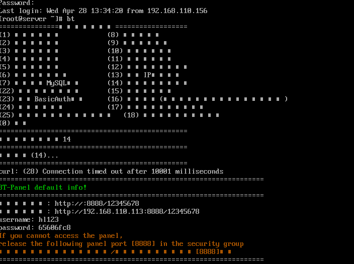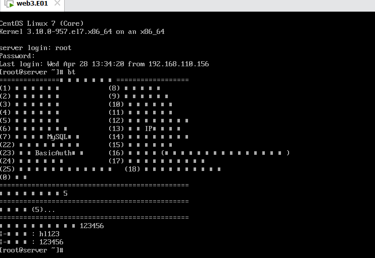 进去了字体是炸的我日,看来没有中文字体,我去自己虚拟机看了下,查看bt用户和密码的命令如下: