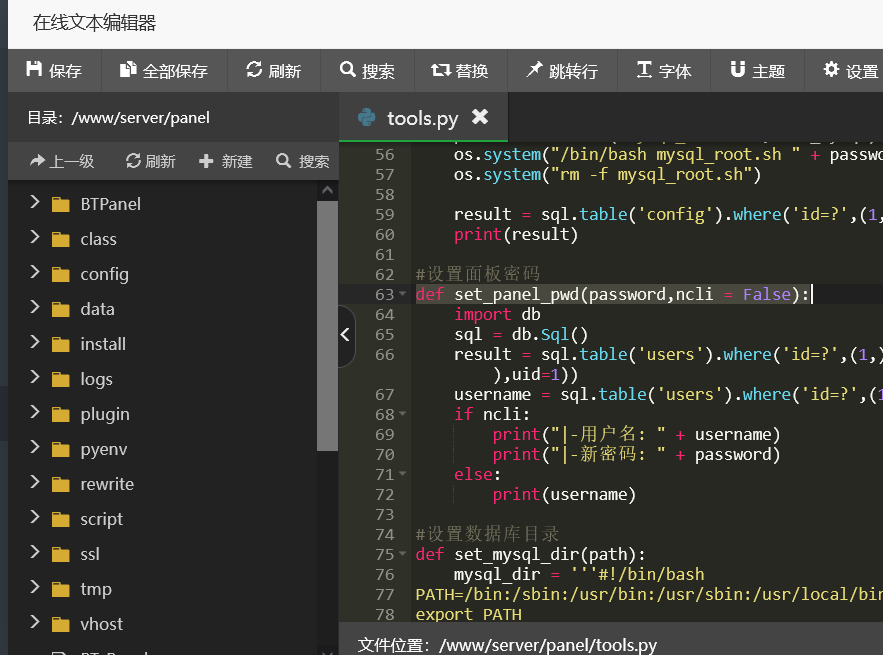 嫌疑人架设网站使用了宝塔面板,请问面板的登陆用户名为