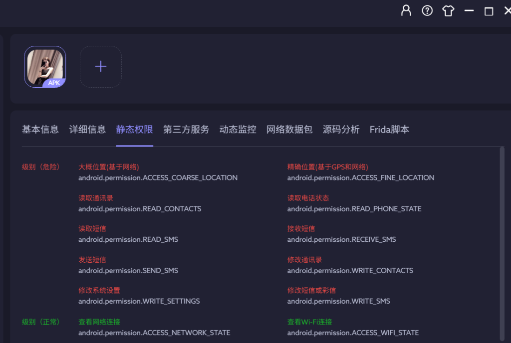 该APK具备下列哪些危险权限(多选题): A.读取短信 B.读取通讯录 C.读取精确位置 D.修改通讯录 E.修改短信
