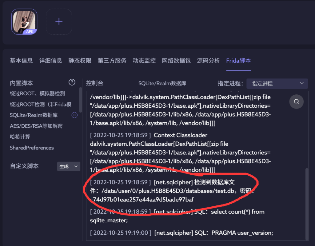 分析,发现该APK在运行过程中会在手机中产生一个数据库文件,该数据库的初始密码为