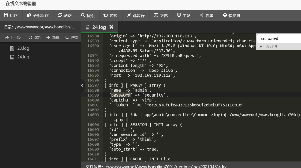 题目说案发时间是4月24日,看火眼的日志解析,该时间段内192.168.110.203这个ip多次出现
