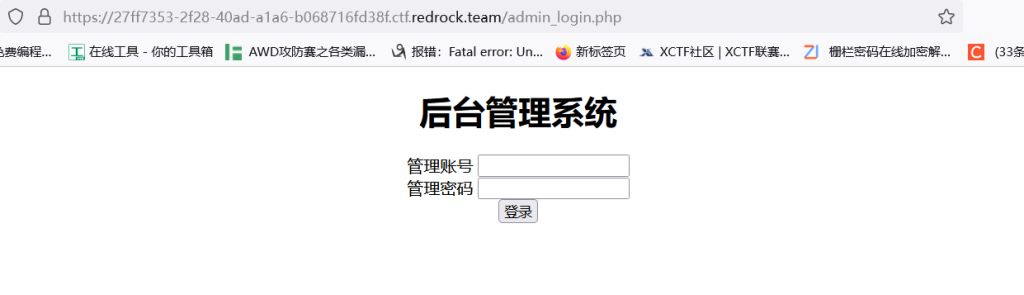 放弃了文件上传这种想法,我注意到另外两个参数,一个是姓名一个编号,因为我认为这是一道sql题,因此他们肯定会被插入数据库中,所以我试着对这两个参数跑了很久的sqlmap,自己也构造了很久,发现似乎并没有什么方法拿到数据,遂放弃了这种想法。因为我fuzz的时候发现有些路径显示了403 Forbidden,所以我猜测这个网站还是有其他很多东西的,只是没显示出来,所以拿御剑跑了一下,果然一下就跑出后台了,路径:/admin_login.php: