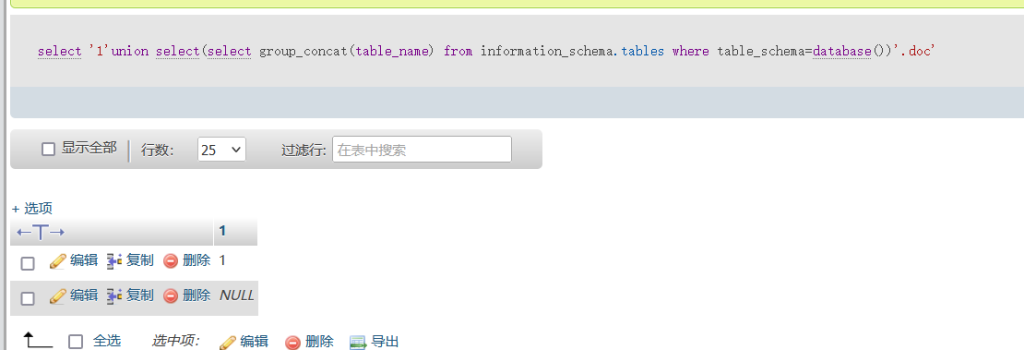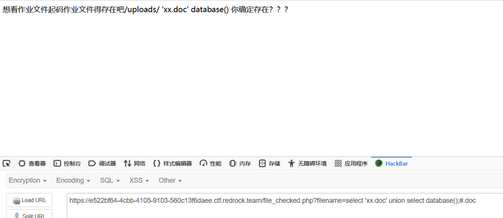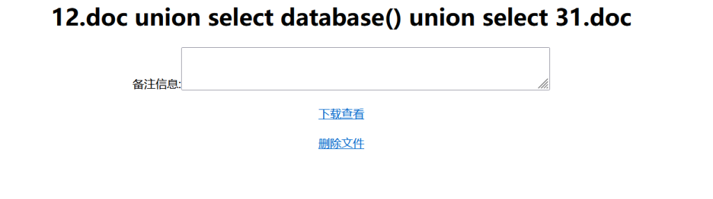 然后我终于想起来这个题是联合注入了,于是构造出来了12.doc union select database() union select 31.doc这种,然而没有查到数据。