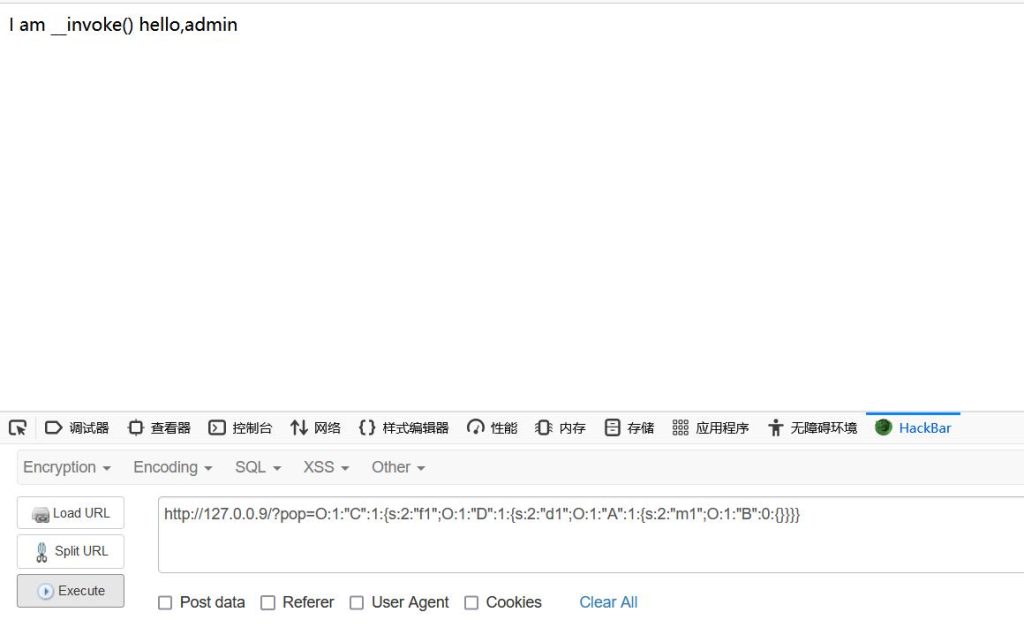 理解起来应该挺简单的,毕竟__toString()的例子里我已经解释过了,可以用echo $this->f1 . ‘xxx’;这种形式调用__toString(),然后__toString()里又直接调用了run(),run()里以($this->m1)();这种形式进行了调用,通过$a->m1=$b所以顺理成章地调用了D类中的__invoke()方法。
