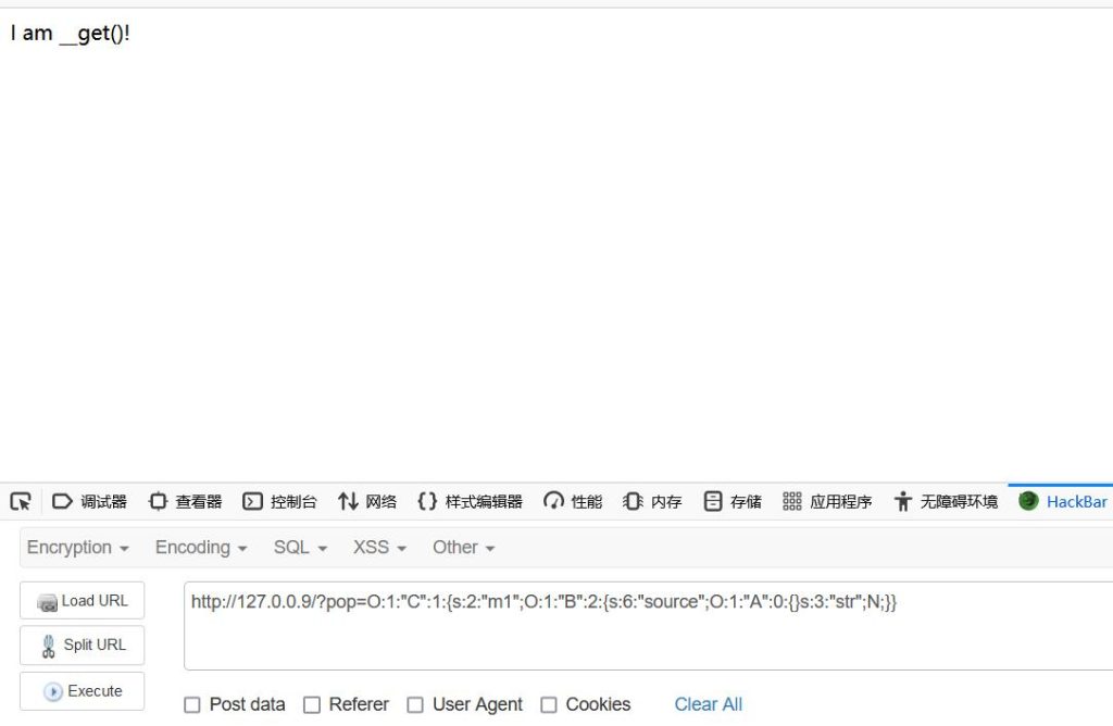 这里我们$b->source中的source被赋为了A类,A中没有str这个属性,所以当调用$this->source->str;时会调用__get()。