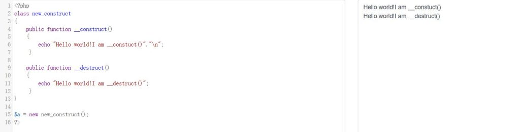 __destruct(),即析构函数(destructor), 与构造函数相反,当对象结束其生命周期时(例如对象所在的函数已调用完毕),系统自动执行析构函数,如: