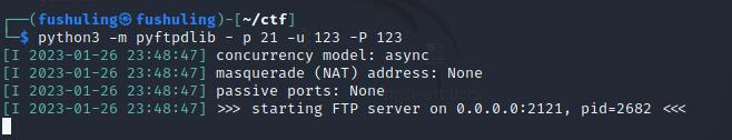 python3 -m pyftpdlib - p 21 -u 123 -P 123