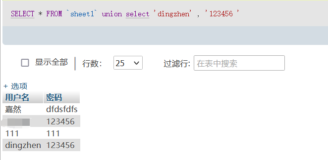 SELECT * FROM `sheet1` WHERE 用户名="$username"我们可以用”||”1、” or “1”=”1,甚至是”union select 1,2,”3进行闭合
