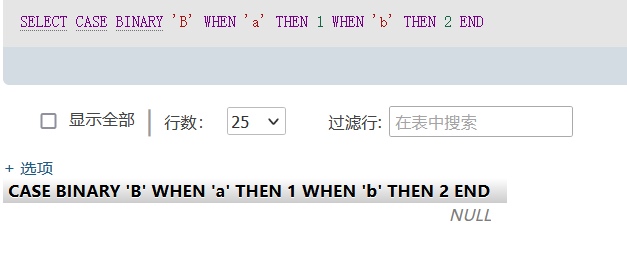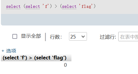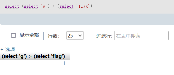 select * from sheet1 where 用户名="admin" and greatest(ascii(substr(database(),1,1)),64)=64作用和上面相同,如果database的第一个字符不是这里最大的则会返回64,and后面成立,反之若大于64后面的式子不满足也就不会有回显了。