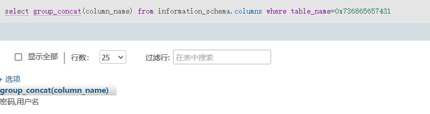select group_concat(column_name) from information_schema.columns where table_name="sheet1"sheet1旁边的引号一去掉就会报错,这时我们可以把sheet1这个表名转为16进制字符串,这样就不用使用引号了: