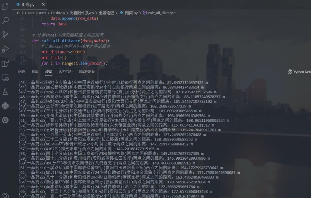 然后找胡杨帮忙写了个计算距离并排序的脚本: