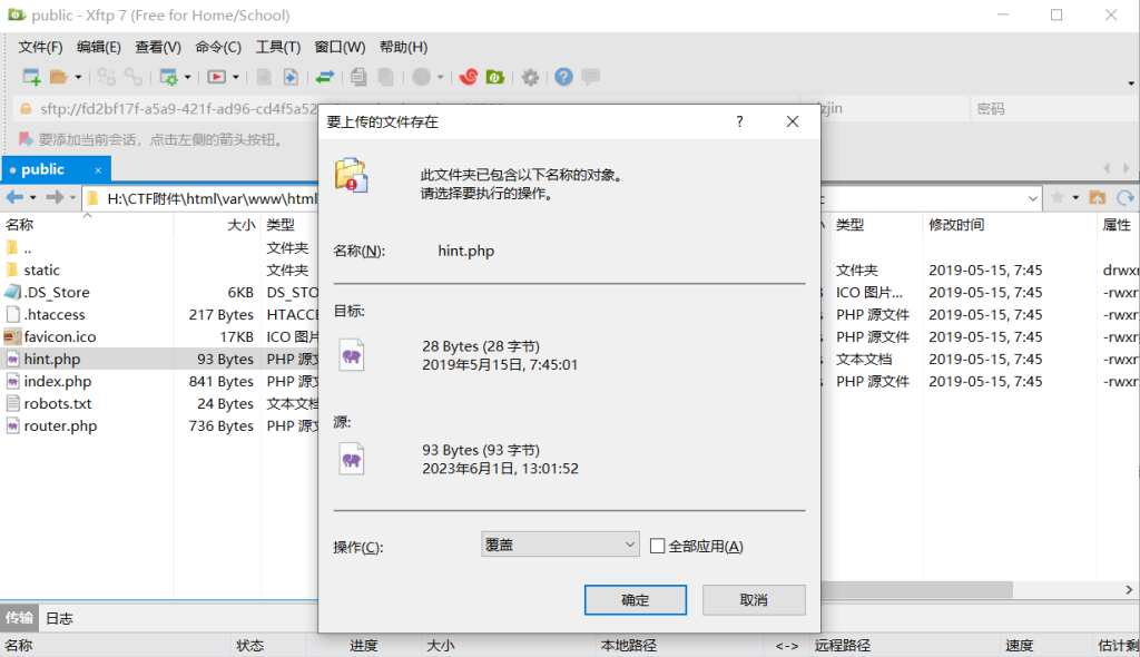 比如上面我们用D盾扫到了一个hint.php后门,我们就可以用那个后门把我们自己的内存不死马写进去: