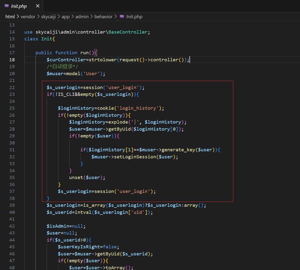 首先看到这里,这儿有个自动登录的逻辑,我们可以控制login_history这个cookie,解析的格式是uid|key