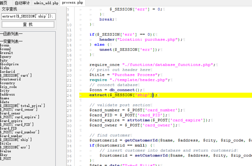 这里ship是可控的,可能有变量覆盖的漏洞,但我当时也没想到到底咋利用,但注释了之后申请防御就过了,之前只改那个后门和文件上传没防御成功,所以可能这里确实有点什么漏洞啥的,后面也没细看了。