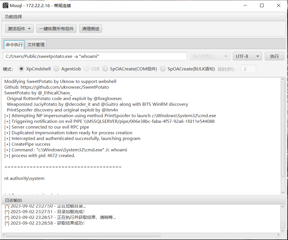 这里一眼sweetpotato提权,但你直接传文件是会报错的,开了那个Ole之后就能正常上传了