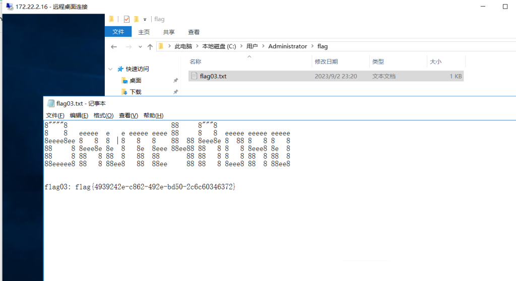 连上去用netstat -ano会发现3389端口是开着的,也就是远程桌面rdp那个,这里我们给自己创个用户然后rdp过去,获得第三个flag