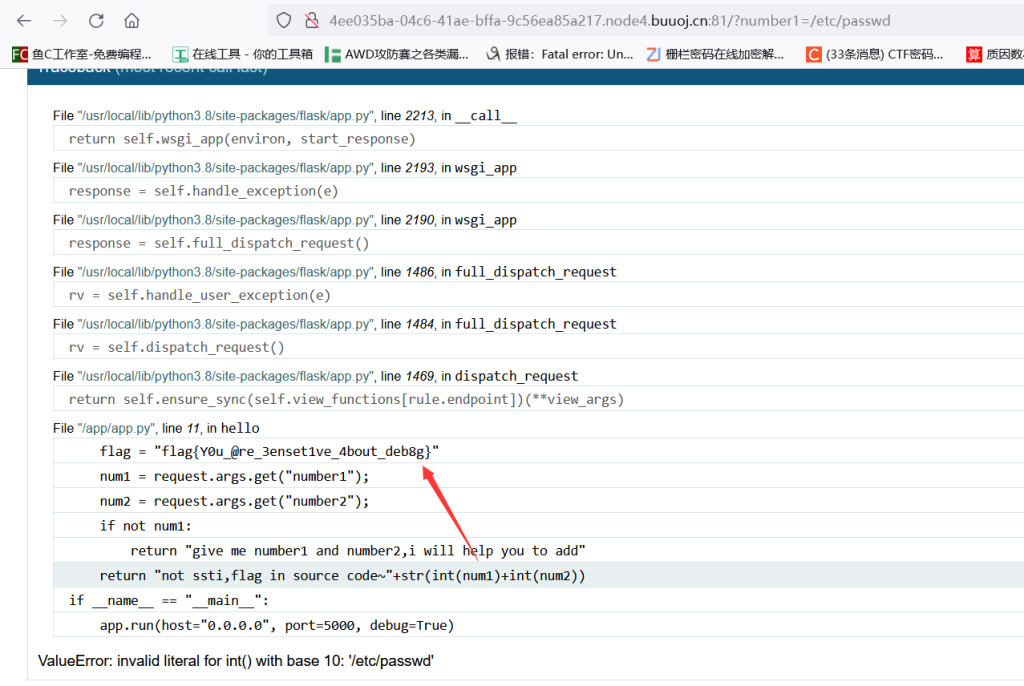 本来以为是算pin码,没想到报错直接泄露flag了