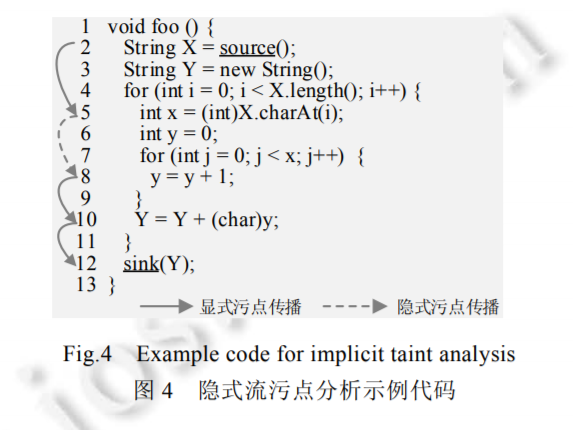 隐式流分析是分析污点标记如何随程序中变量之间的控制依赖关系传播,也就是分析污点标记如何从条件指令传播到其所控制的语句