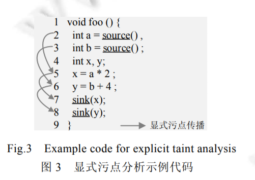 这里前面其实已经解释过基本概念,也就是分析污点标记如何随程序中变量之间的数据依赖关系传播,这里主要给个例子来具体看看如何在代码中分析显式流和隐式流