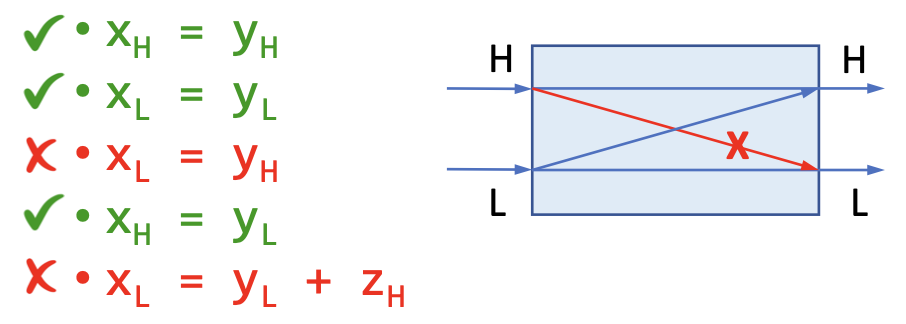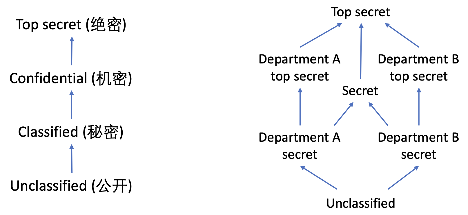 这里我们可以发现机密性和完整性恰好是对称的。机密性防止H(高安全等级信息)流向L(低安全等级信息),而完整性是防止L(不受信任的信息)流向H(受信任的信息)。