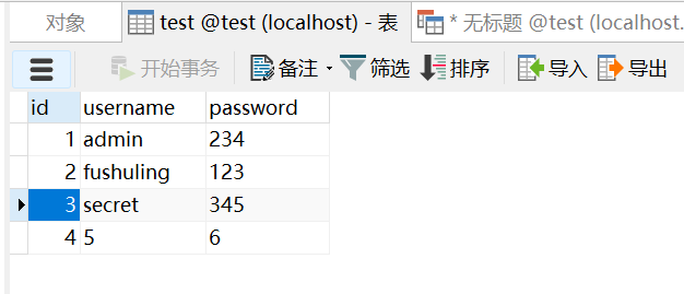 column=password ;INSERT INTO test (id, username, password) VALUES (4, '5', '6');