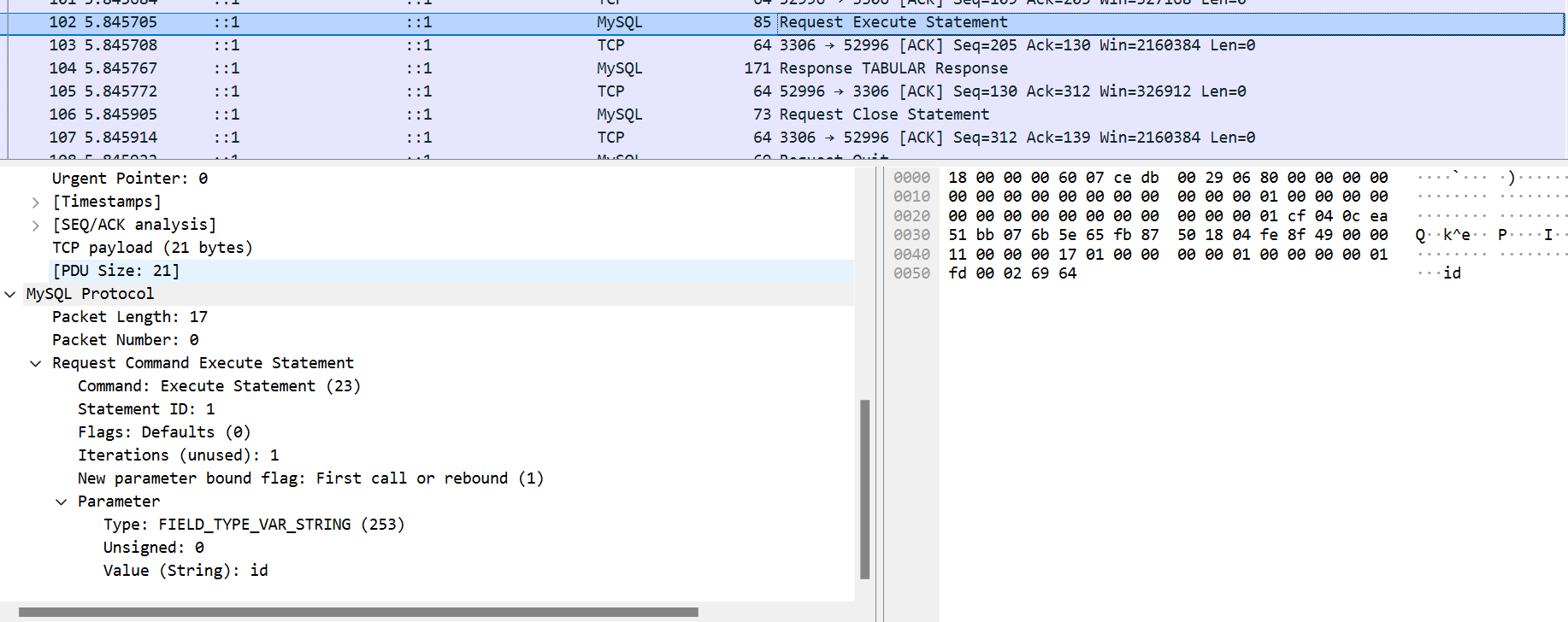 接着我直接去本地抓了一下web服务和数据库服务通讯的二进制协议的流量