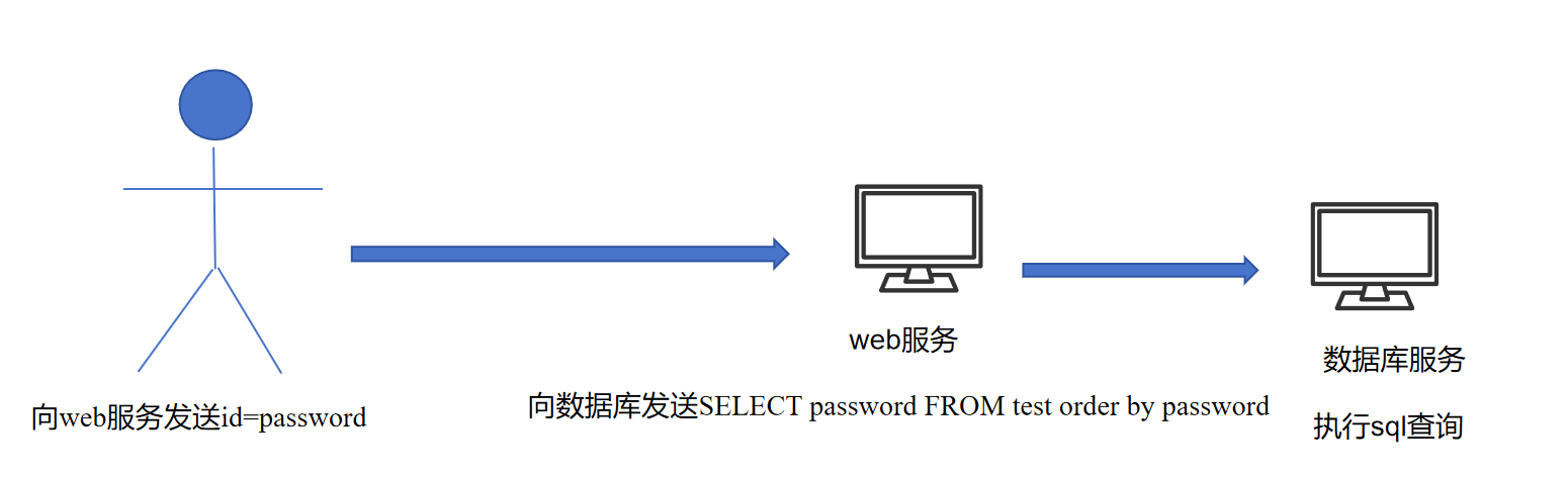 实际上的过程是,用户向web服务发送了id=password,web服务接收到password之后,拼接进自己的sql查询语句,得到结果SELECT password FROM test order by password,再把这个语句发送给数据,让数据库执行这次sql查询。