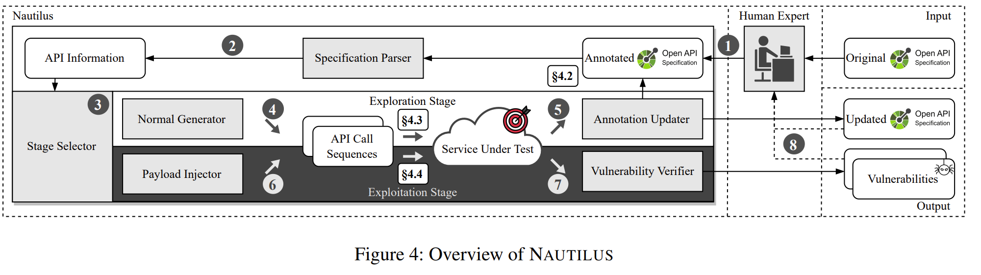 该如何保证扫描工具”记住”正确的API请求顺序,从而发现这些一般漏扫发现不了的潜藏的比较深的漏洞呢?这就是今天这篇论文的主题了,这是一篇来自于四大网安顶会之一的USENIX Security的论文:NAUTILUS: Automated RESTful API Vulnerability Detection,值得注意的是该论文的大部分作者都来自中国,比如奇安信、中信所等等,是一次典型的工业界与学术界的结合。