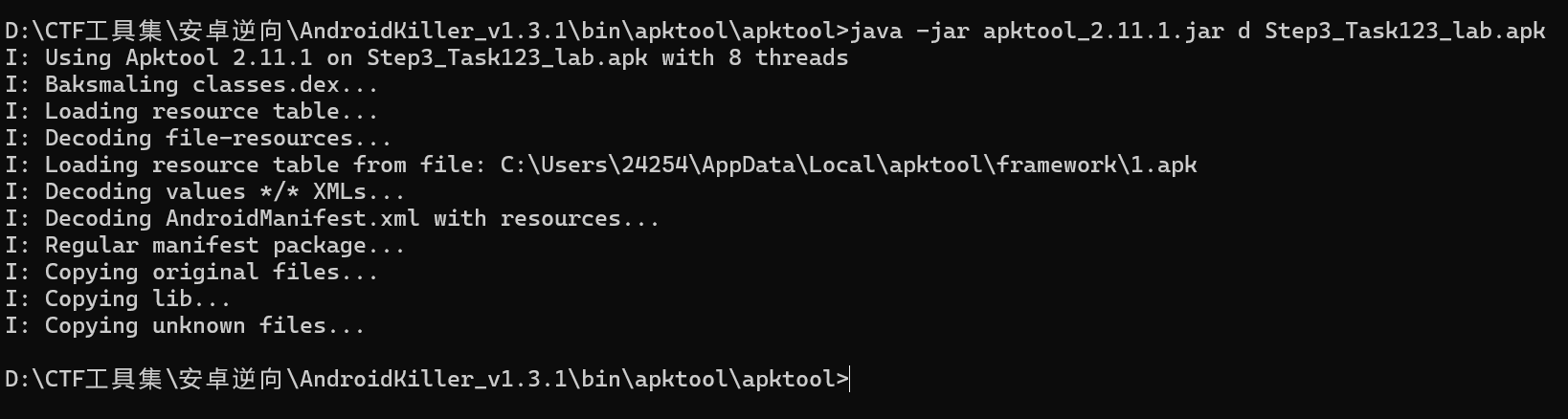 java -jar apktool_2.11.1.jar d Step3_Task123_lab.apk
