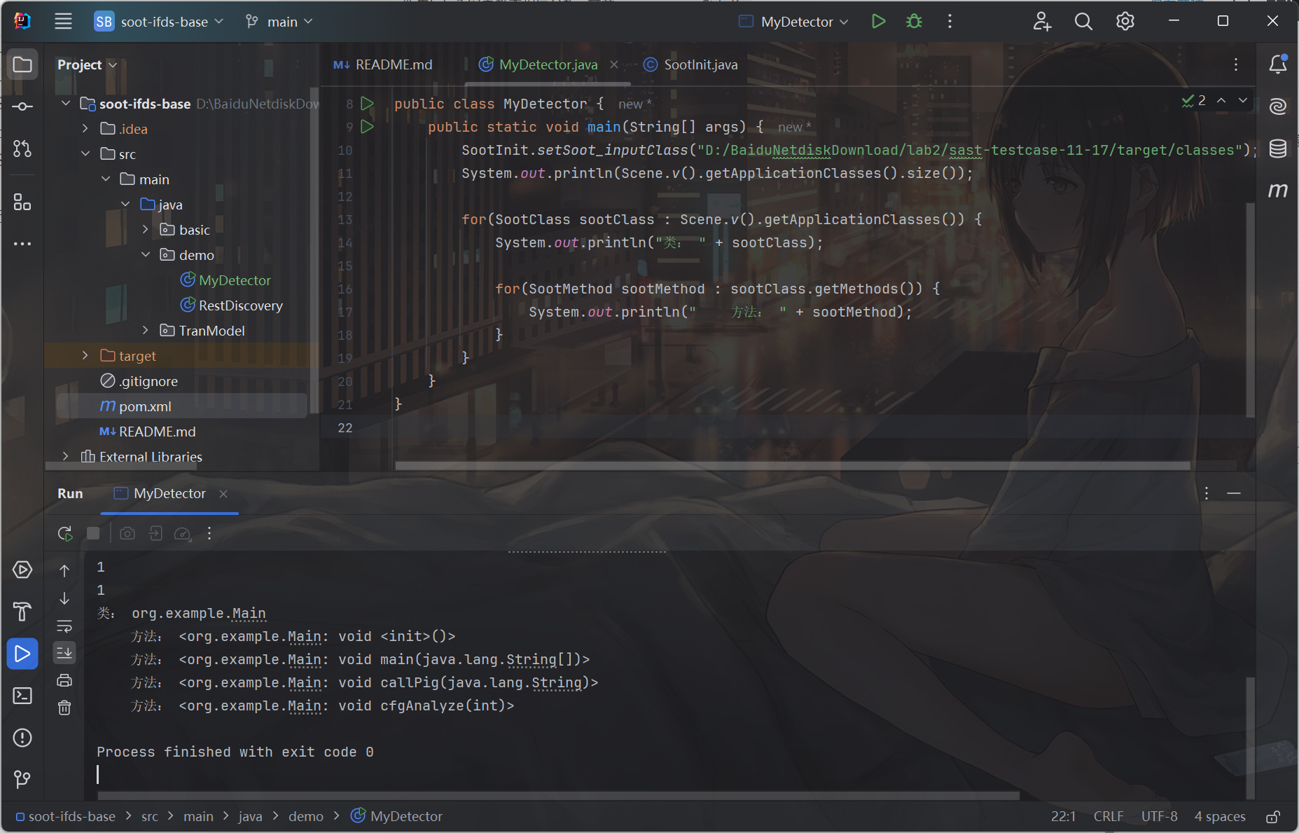 SootInit.setSoot_inputClass("D:/BaiduNetdiskDownload/lab2/sast-testcase-11-17/target/classes");