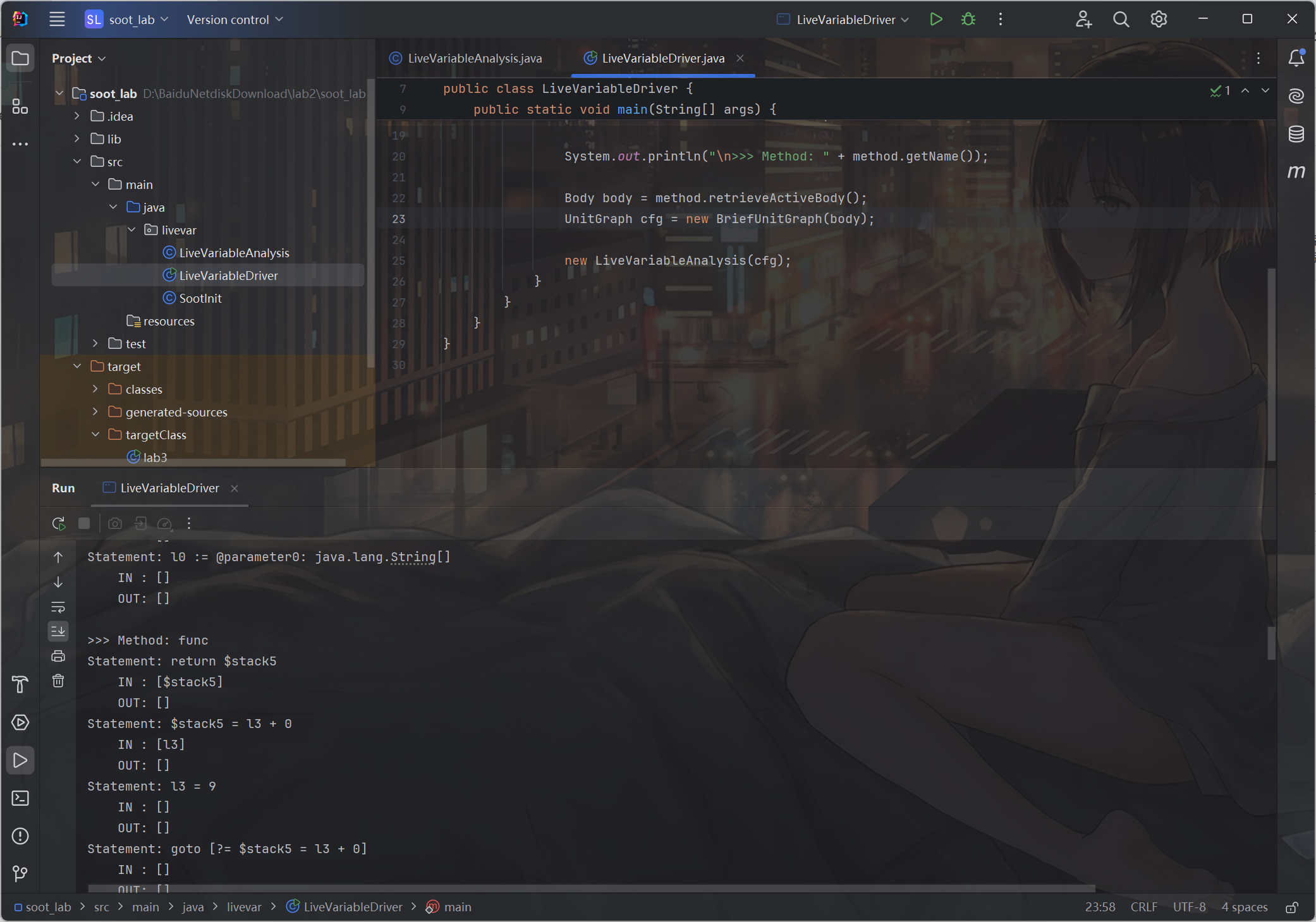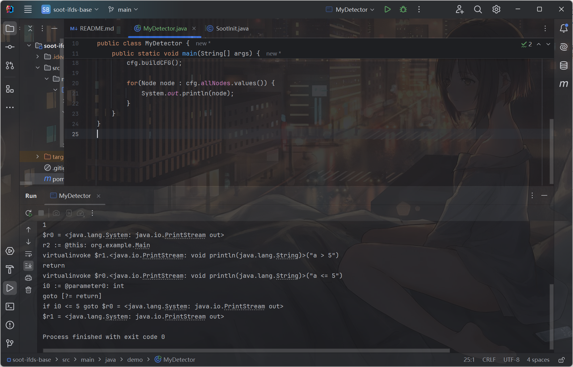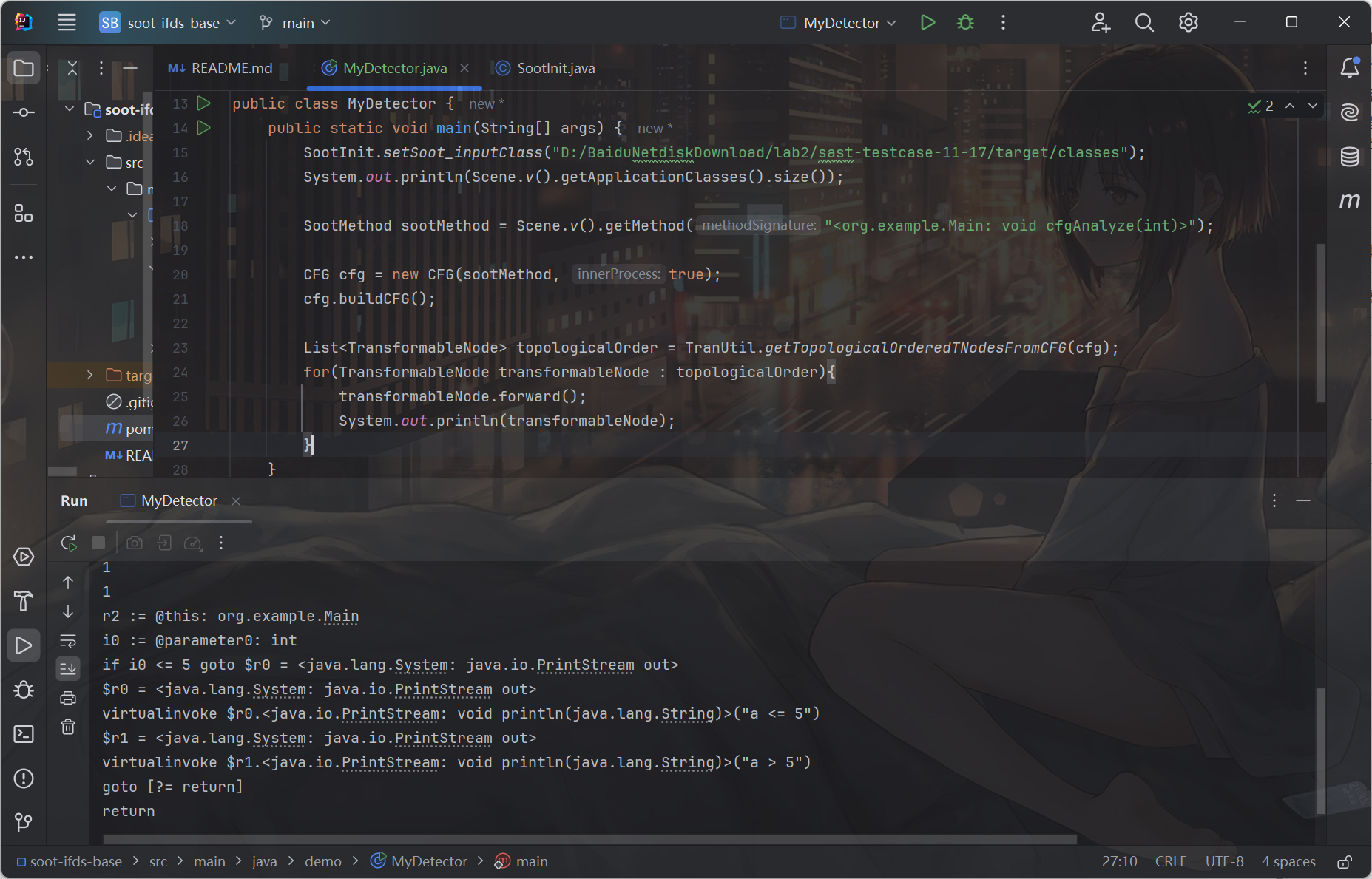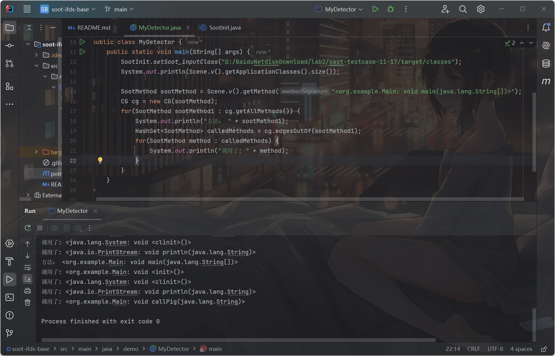 在idea中打开待测项目,运行主类后生成的classes就是soot的输入: