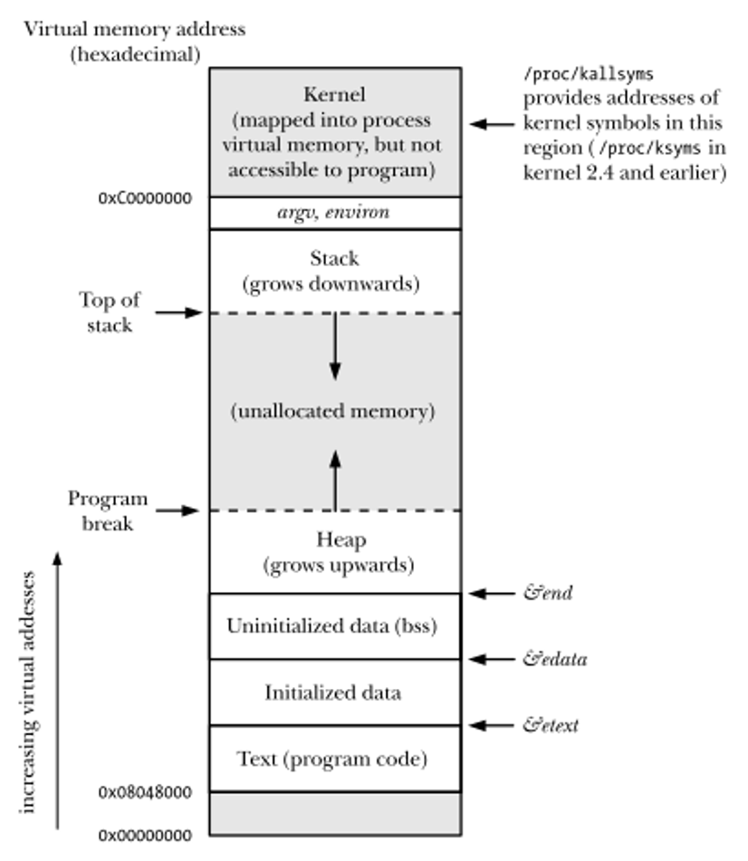 进程虚拟地址空间布局