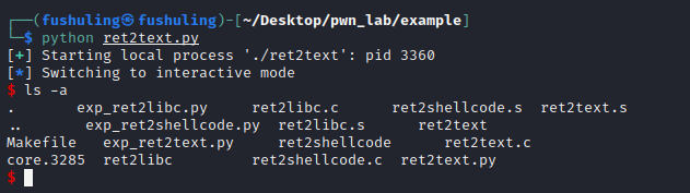 ret2:通过“返回”(return)指令来劫持控制流;shellcode:一段手工编写的二进制代码,执行某些攻击操作(如/bin/sh)。